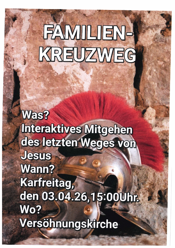 Nächster Artikel » > Familienkreuzweg Karfreitag, 3. Apr. 2026 15 Uhr in der Versöhnungskirche « zurück zu: Aktuelles